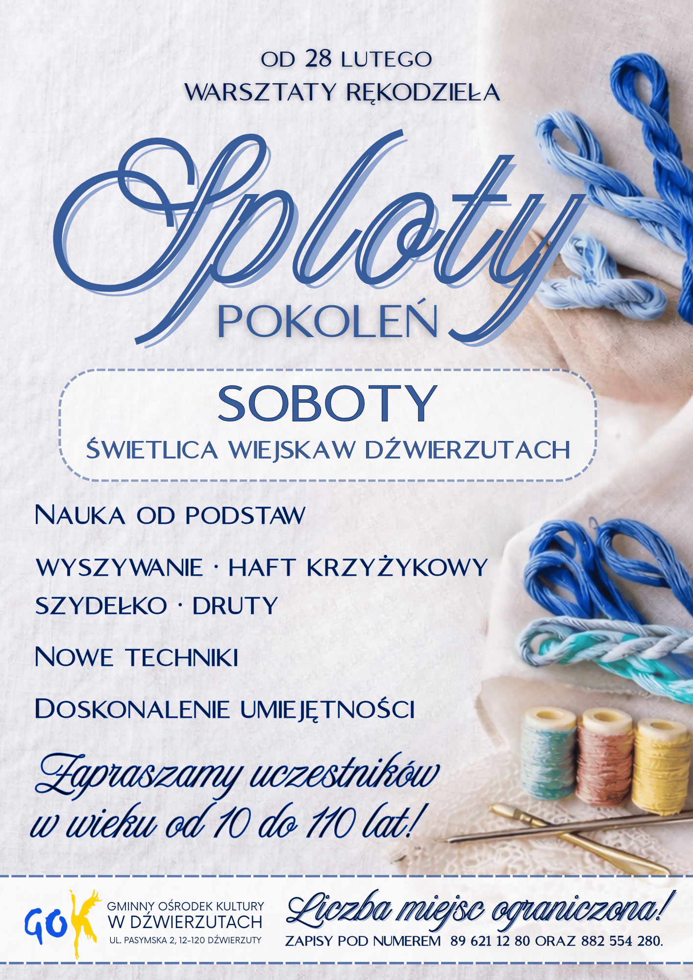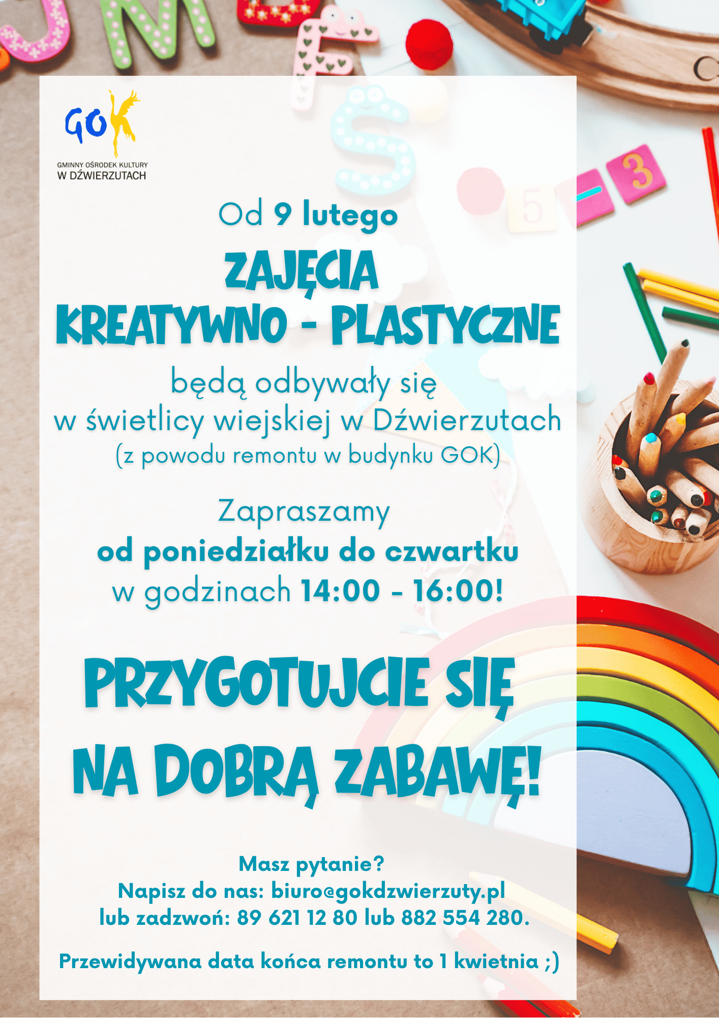 Kwiecień w Gminnym Ośrodku Kultury w Dźwierzutach zapowiada się niezwykle inspirująco. Przygotowaliśmy bogaty program wydarzeń dla mieszkańców w każdym wieku...