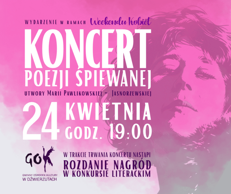 Koncert odbędzie się 24 kwietnia o godz. 19:00 w Gminnym Ośrodku Kultury w Dźwierzutach.
