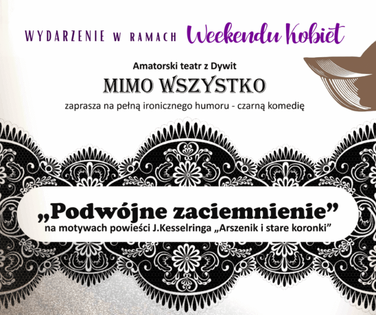 W ramach Weekendu Kobiet zapraszamy na wyjątkowy wieczór teatralny z dużą dawką ironicznego humoru. Już 26 kwietnia o godz. 17:00 w Gminnym Ośrodku Kultury w Dźwierzutach wystąpi Amatorski Teatr z Dywit „Mimo Wszystko”.